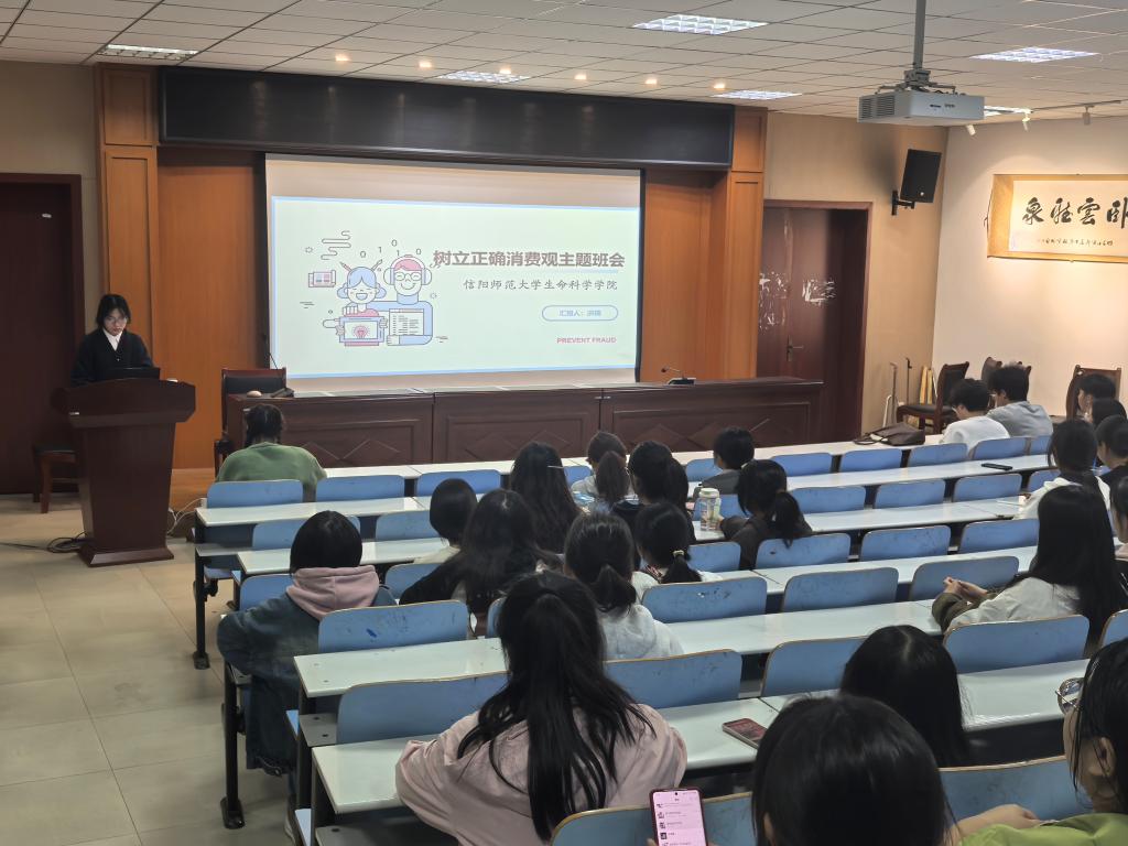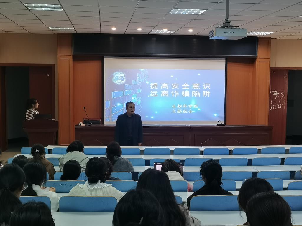 为加强同学们的安全意识,打造良好安全的校园环境。11月8号,新葡的京官网在生科楼414报告厅召开2024级预防诈骗及树立正确消费观主题班会。会议由2024级专职辅导员洪瑞主持,党委副书记荣宪举、2024级生物科学全体同学参加会议。
