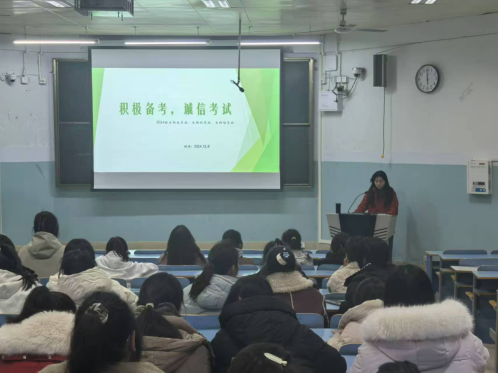 12 月 8 日,新葡的京官网以“积极备考,诚信考试”为主题的班会在教九楼305成功举办。2024级辅导员洪瑞主讲,2024 级生物技术班、生物制药班和生物信息班的全体同学参加会议。