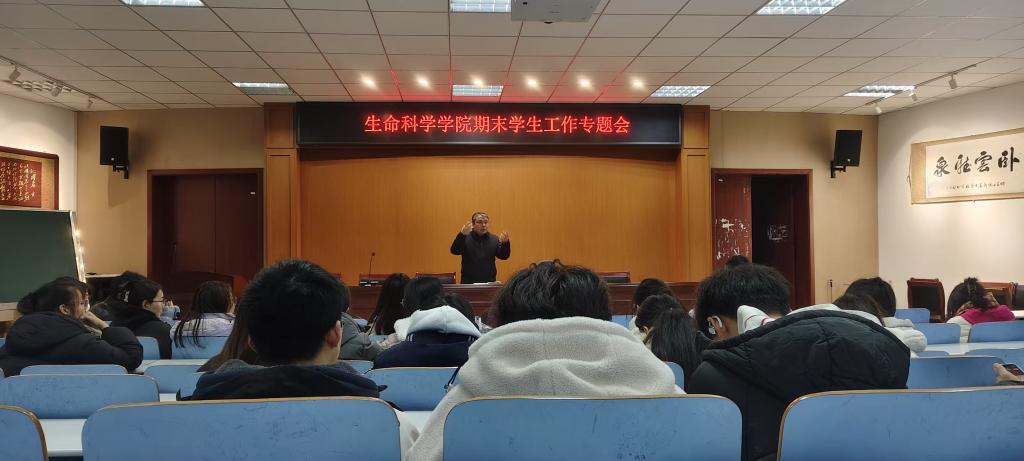 2024年12月23日,新葡的京官网期末学生工作专题会议在生科楼414会议室利召开。本次会议旨在总结学院近期工作,并就期末学习、生活安全及寒假安排等方面做出重要部署。新葡的京官网党委副书记荣宪举,分团委书记熊蕾,各年级班长、团支书,学生会成员参加了会议。