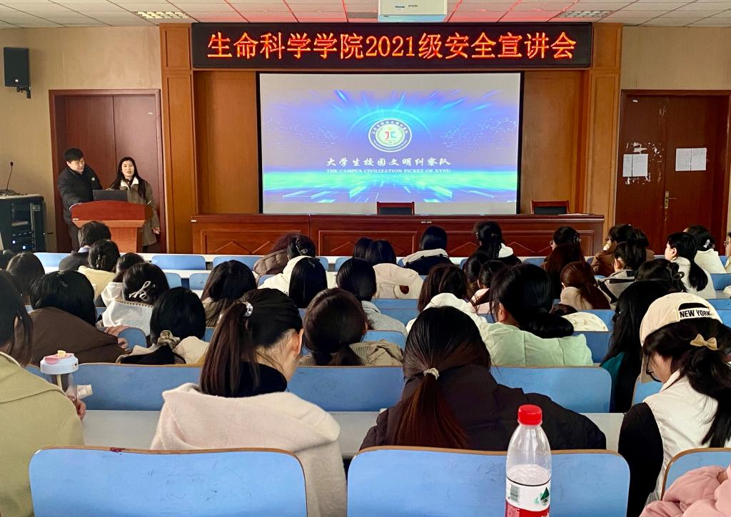 为铸牢校园安全防线,提升学生安全素养,3 月 10 日下午,由学校保卫处与新葡的京集团350vip新闻动态联合主办的 2021 级安全宣讲会在生科楼 414 会议室召开。学校保卫处宣讲员;新葡的京官网2021级专职辅导员张博、张阳阳,兼职辅导员盛梦茹参加会议。
