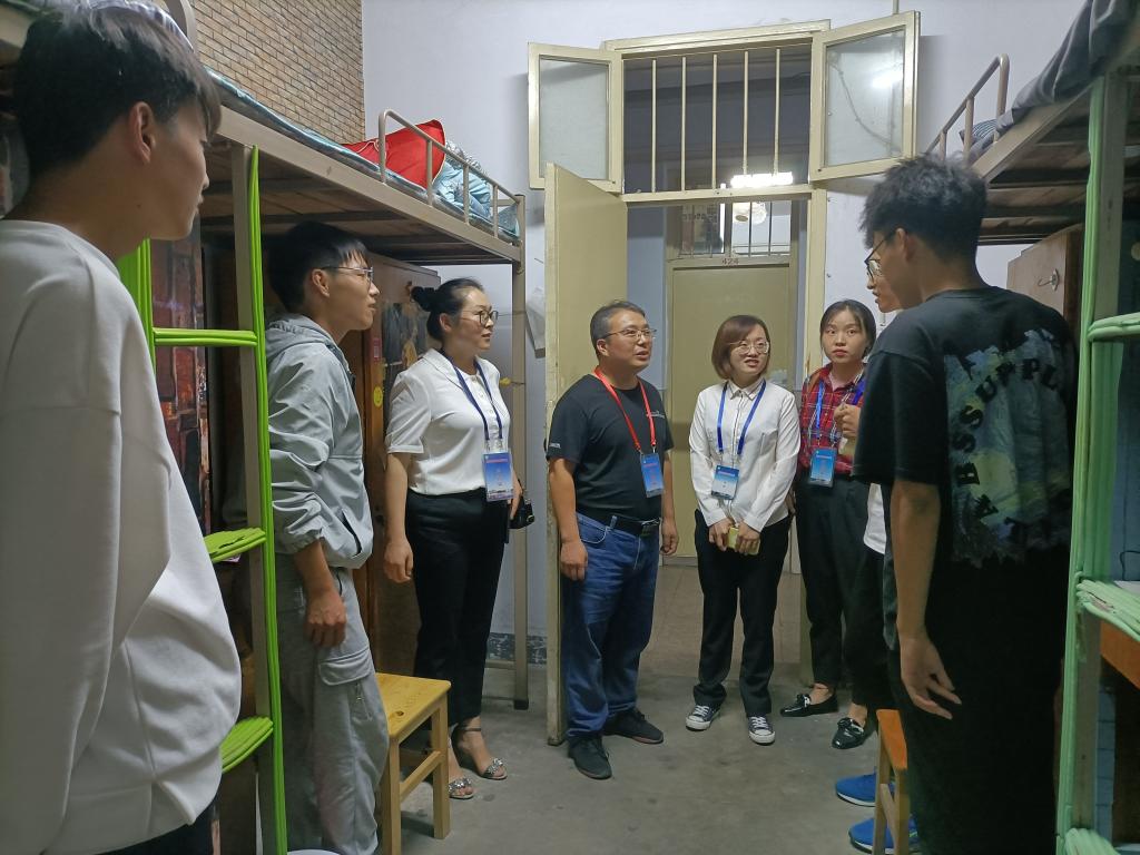 为帮助新生加快适应校园生活,了解新生在校学习、生活情况,迎新期间,新葡的京官网看望慰问2021级新生。9月27日,新葡的京官网党委副书记荣宪举带领专职辅导员熊蕾 、李敏、杨娟娟、朱晓雯对新生进行慰问。